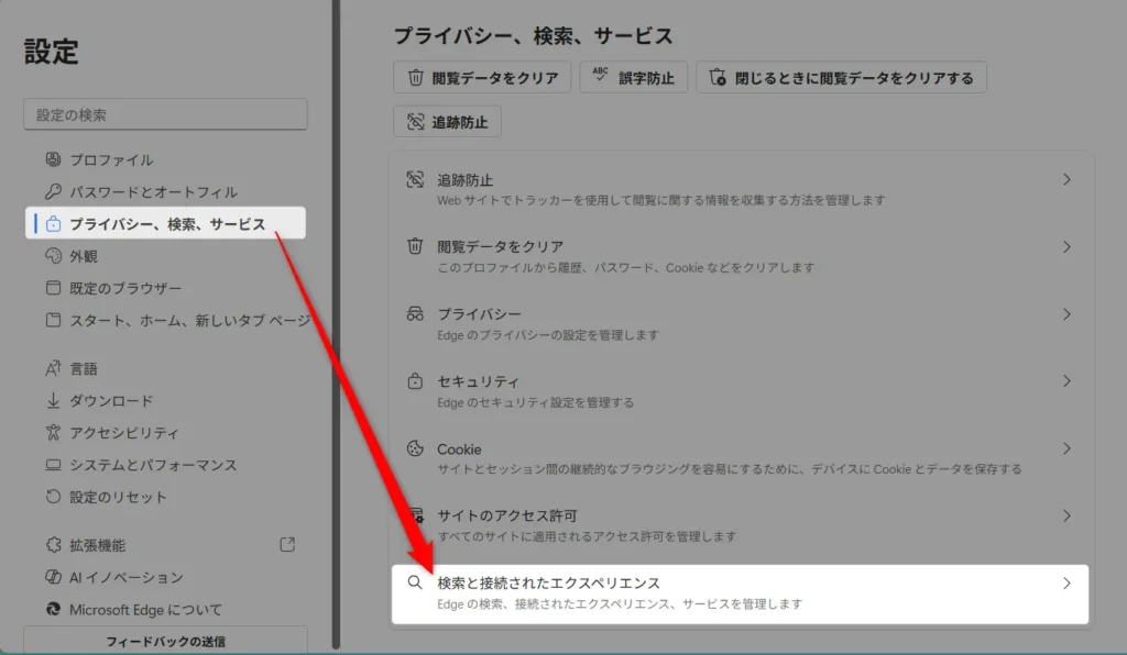 Edgeの設定画面から「プライバシー、検索、サービス」→「閲覧データをクリア」で削除できます。住所やメールアドレスなど、不要なものだけを個別に消すことも可能です。