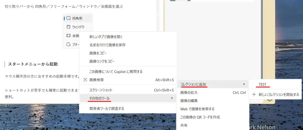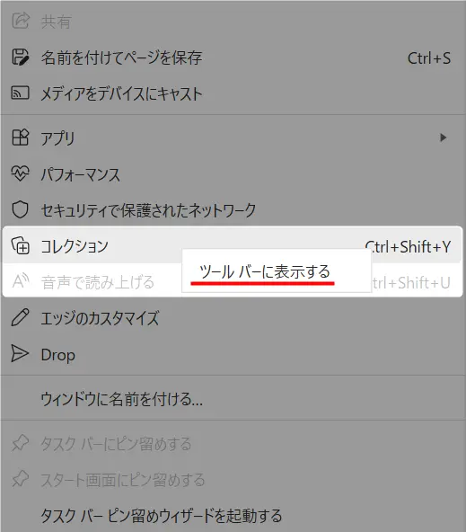 そして[その他のツール] > [コレクションに追加] > [コレクション名]を選択してください。