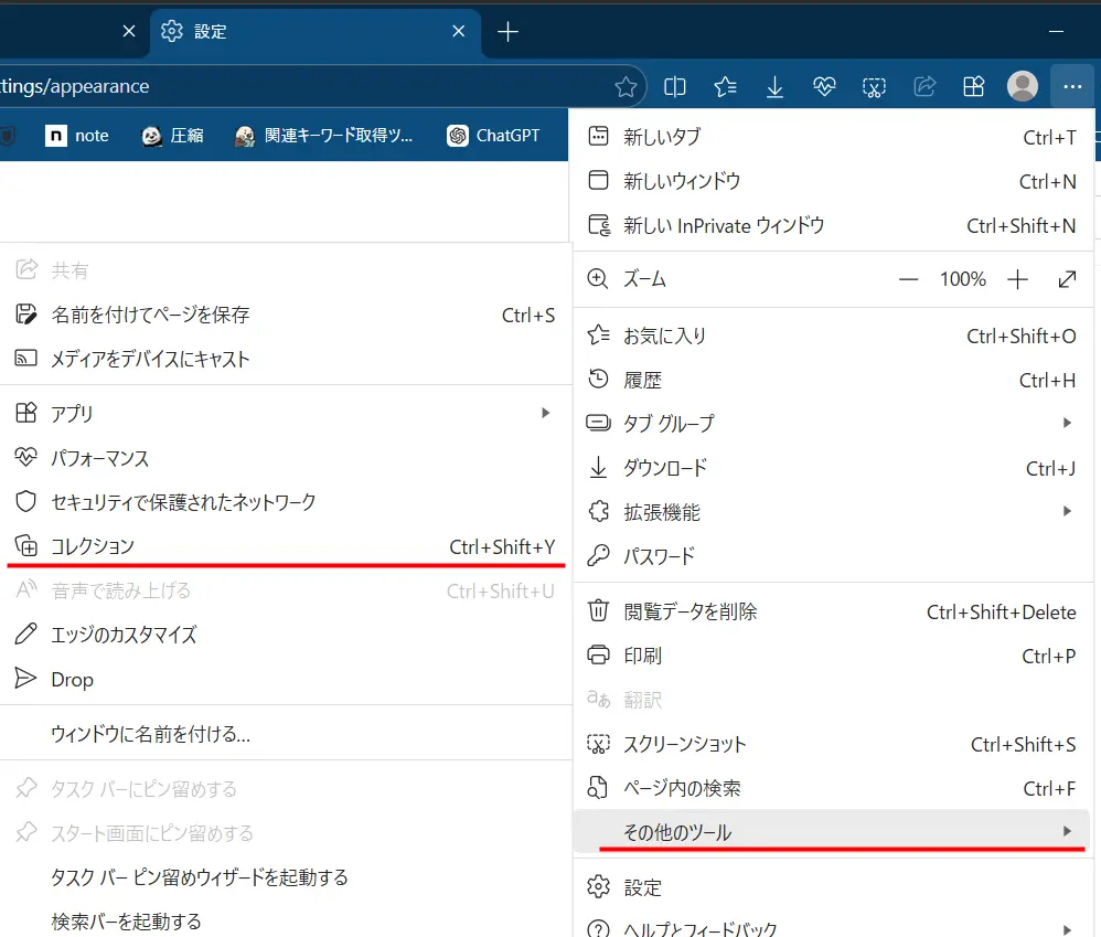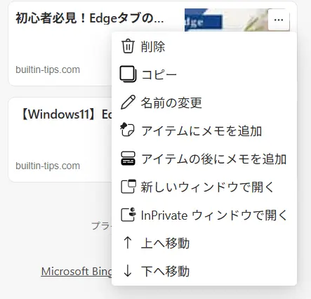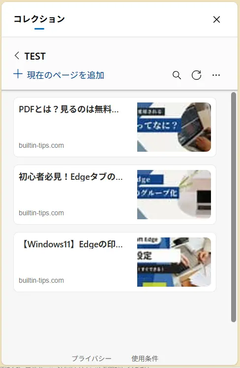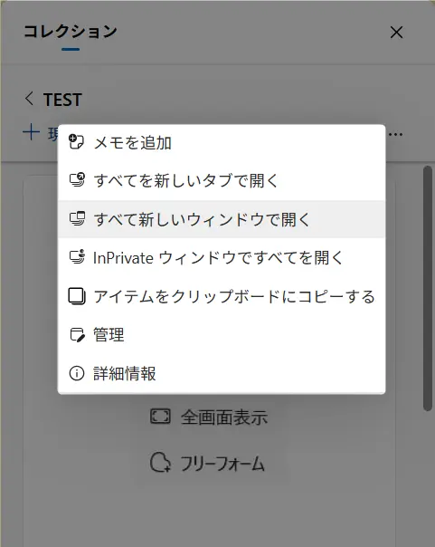 参考:(公式)Microsoft Edge のコレクションを使用してアイデアを整理する