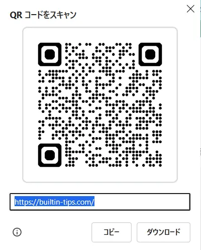 これがEdgeによるQRコードの生成です。もちろん、新たにソフトをインストールする必要もありません。この記事を読んだ後、すぐに使うことができます。
