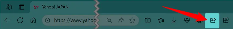 すると、Edgeのツールバーに共有アイコンが表示されているはずなので、これを押しましょう。