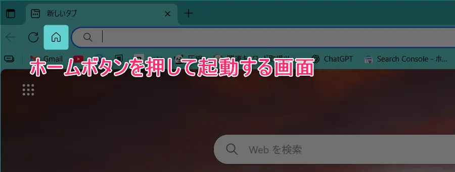 Edgeでは、起動時のページとは別に「ホームボタン」に任意のURLを設定できます。