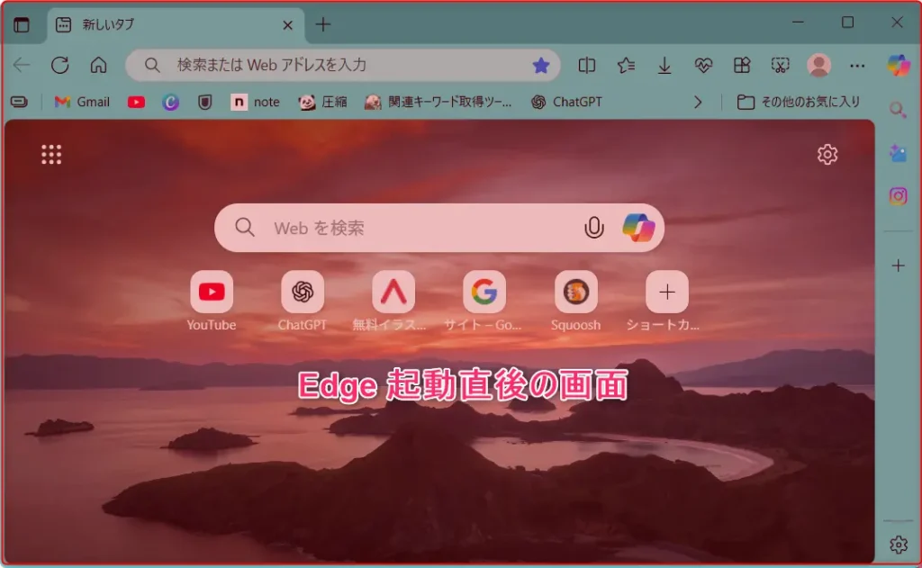 以上の設定が完了したら、いったんEdgeのウィンドウを閉じた後、再度起動してください。