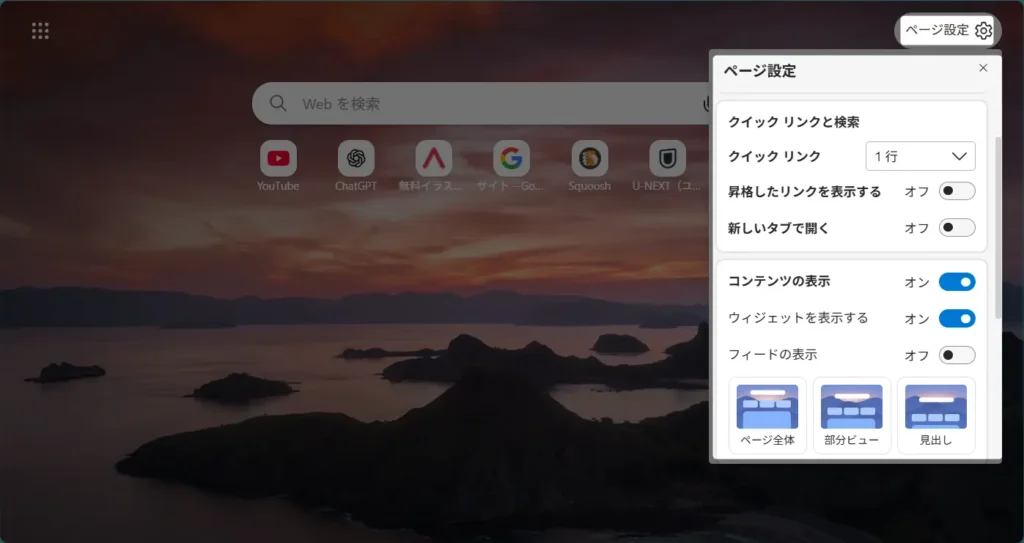 新しいタブのレイアウトをカスタマイズする(新しいタブ設定)