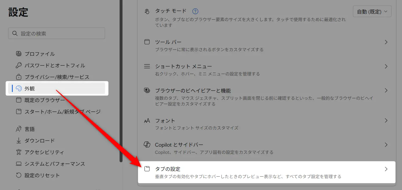 Edgeの垂直タブの設定の基本手順