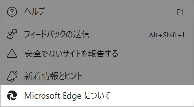 - 「Microsoft Edge について」を開けばバージョンがわかる