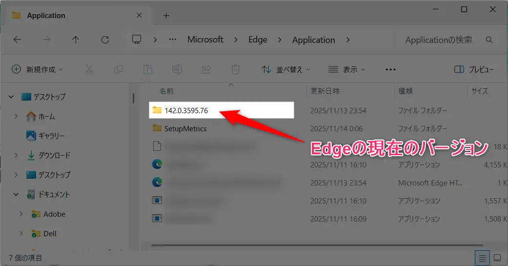 そうすると、名前が数字だけになっているフォルダがあります。これが現在のあなたのEdgeのバージョンです。