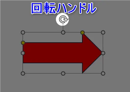 図形の上部にあるピン(青丸)をマウドラッグで回転させます。