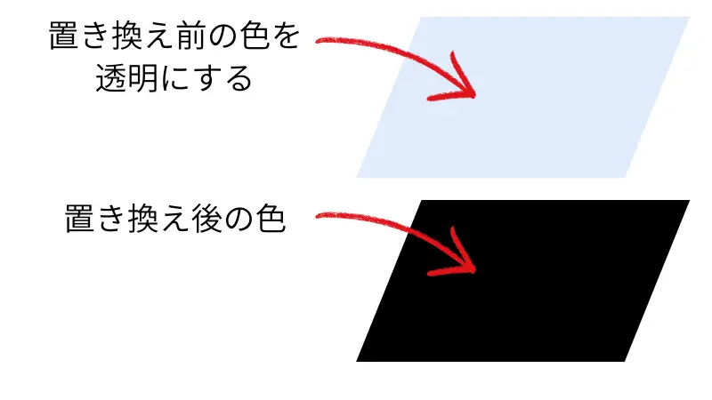 (=置き換え後の色)が透明部分から露出し、あたかも色が置き換えられたように見えるというわけです。
