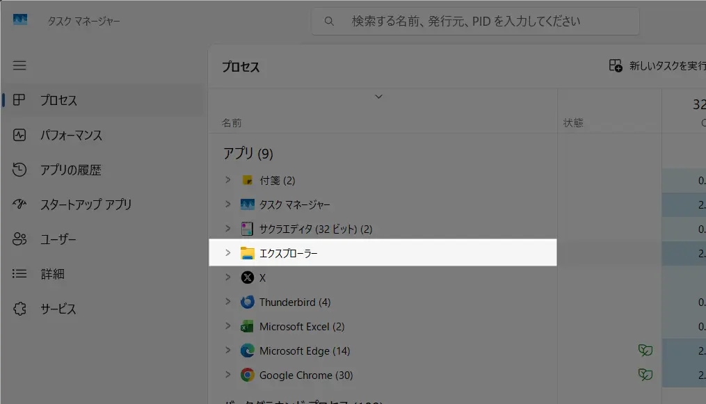 タスクバーやスタートメニューはこのエクスプローラーと連動して動いているため、ここをリフレッシュすることで表示不具合が一気に解消することがあります。
