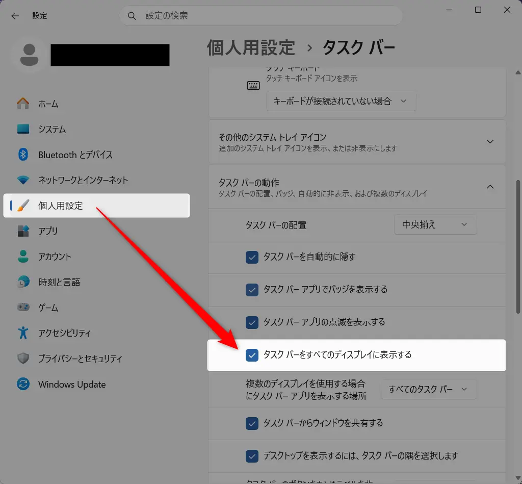 5-2. タスクバーをすべてのディスプレイに表示する設定を見る