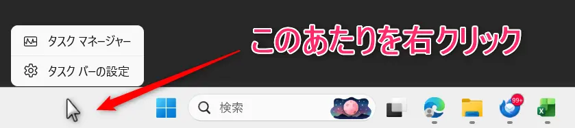タスクバーの何もない部分を右クリック