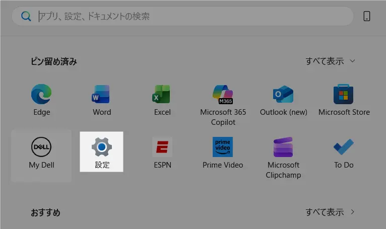 [設定]をクリック